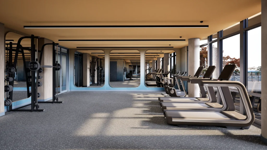 Elevated Beachfront Pool and Sundeck Game Room · State of the Art fitness center Private Workspaces · Lounge · Children’s playroom